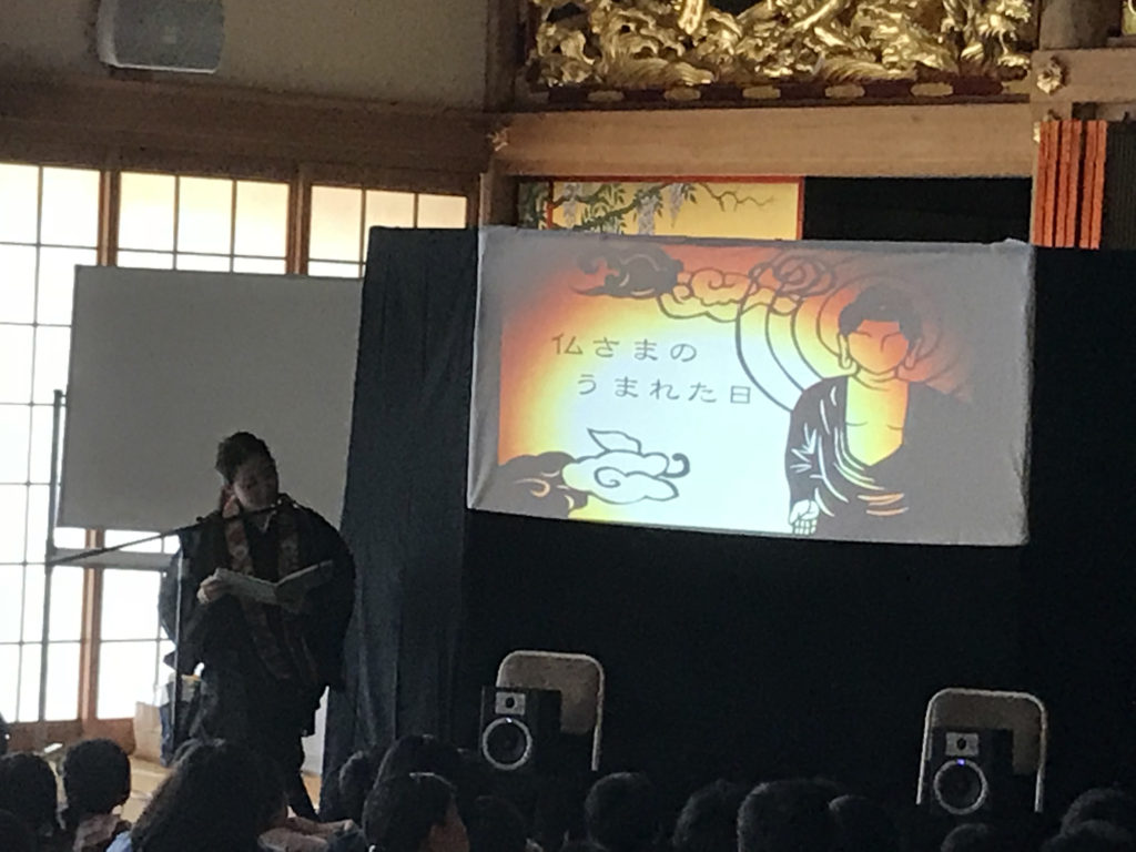京都から「ともしえ」という若い僧侶に来ていただき仏さまについての影絵を行っていただきました。