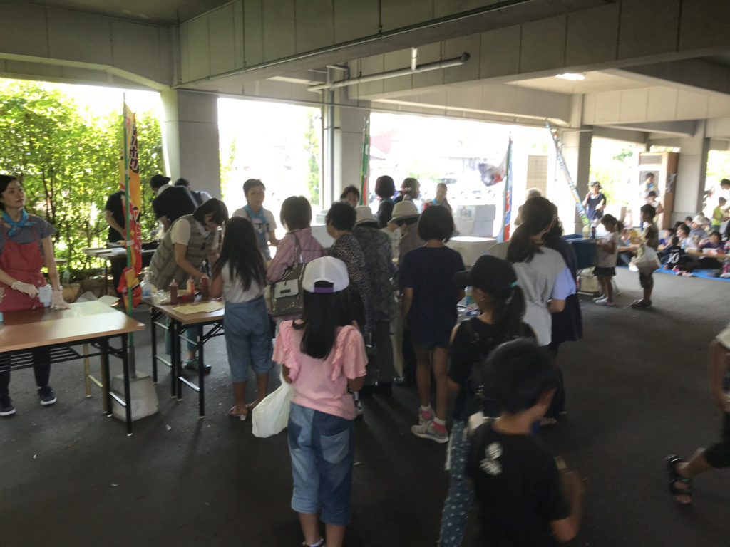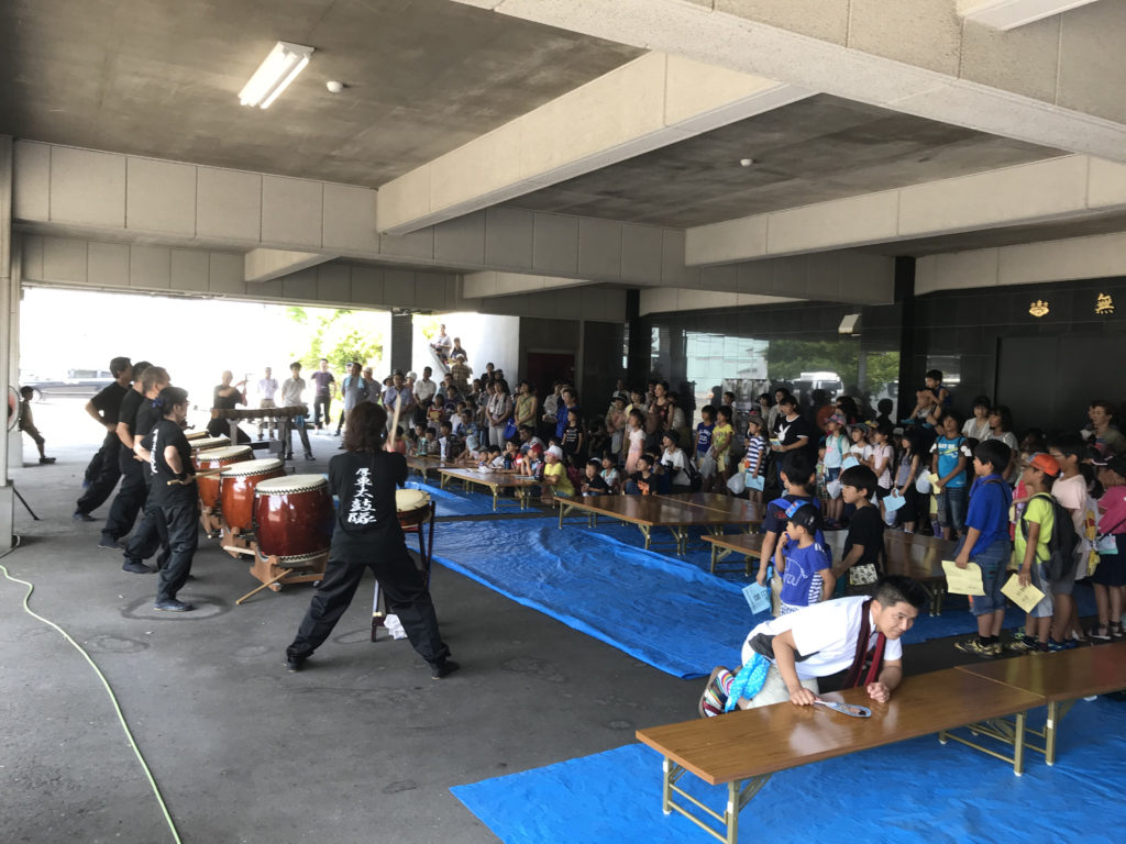 午後からは場所を一階に移して和太鼓の演奏の後、出店を出し食事にゲームに楽しんでもらいました。大変暑い中の開催となりましたが暑さを忘れるくらい子どもたちは楽しんでもらえたようでした。