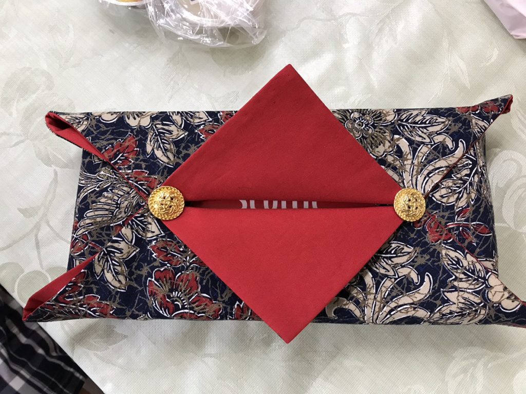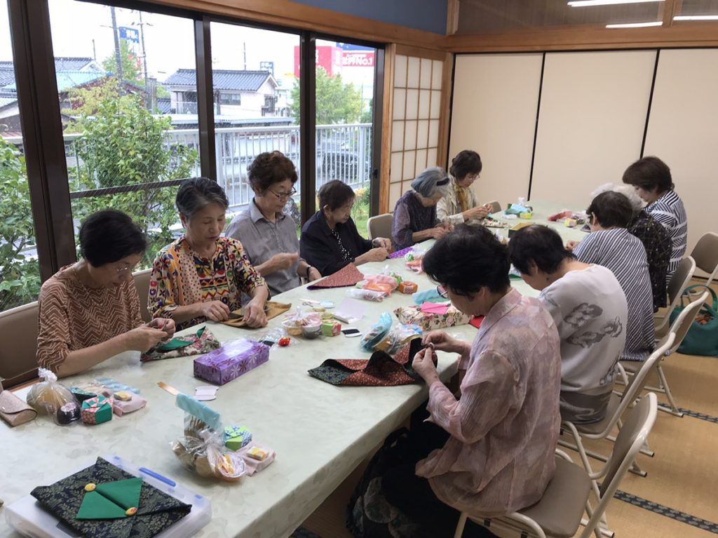 ご本堂でお勤めの後、総会を行い、門徒会館に移りティッシュケースの作成を行いました。